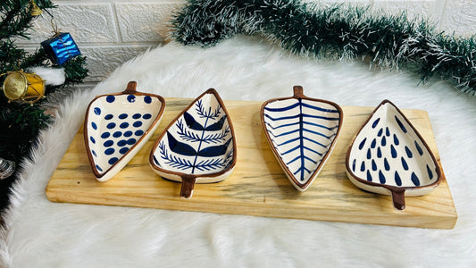 Ceramic Leaf Platter Set Of 4 with Wooden Tray