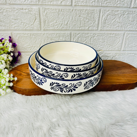 Indigo Vine Handcrafted Ceramic Bowl Set – Set of 3