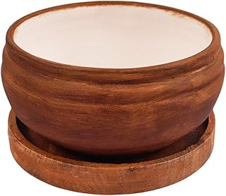Lasaki Bowl Ceramic Pots with Wooden Plate Tray for Indoor and Outdoor Plants,Planters,Flower pots,Balcony,Home,Garden,Office Decor,Succulent Pot(Antique, Plate: Wooden) wp5(Plants not Included)