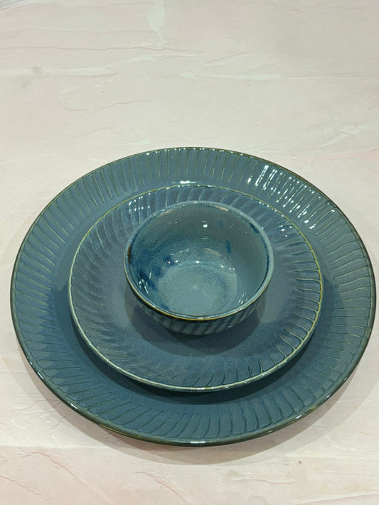 Metallic Blue Glaze with Lines Dinner Set (Set of 3)