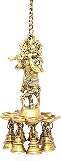 Two Moustaches 9 Inches Krishna Design Brass Hanging Diya, Brass Diyas for Decoration , Diwali Diyas , Diwali Decoration , Housewarming Gifts , 9 Inches Diya, 17 Inches Chain, 1.25 Kg, Antique Yellow